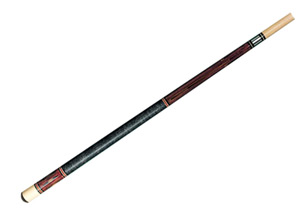 taco de billar de dos piezas, flecha de maple, porra de maple con decoracion de motivos de marqueteria y empuñadura de lino trenzado, longitud 1,48m , puntera de suela de 13mm. peso 567-600 grs. , Uranus1 pool, tonos marrón oscuro